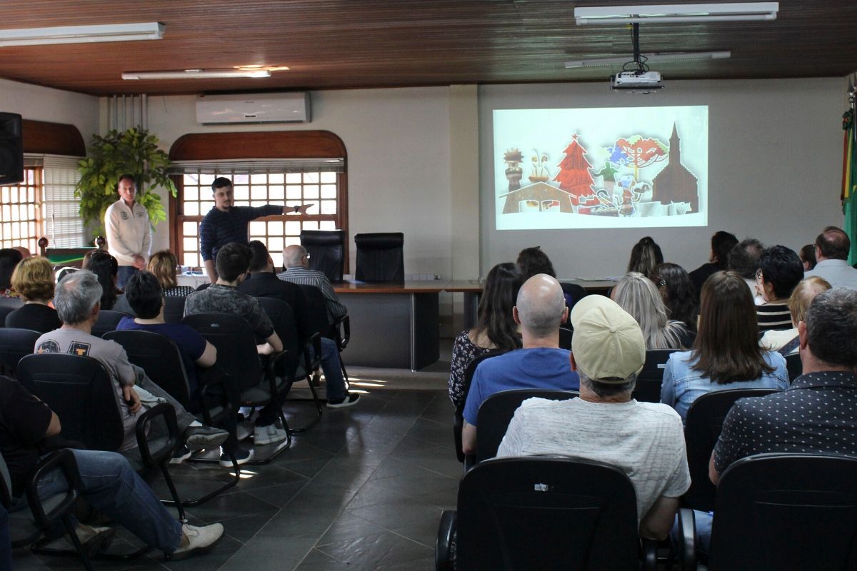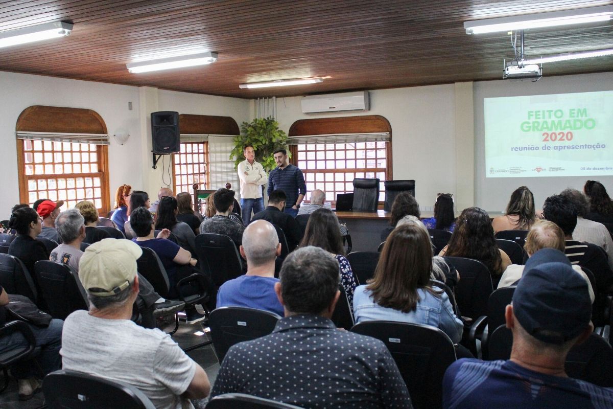 As novidades da Feira Feito em Gramado de 2020 foram apresentadas pelo secretário de Inovação e Desenvolvimento Econômico Anderson Boeira e pelo diretor Sandro Markowski, na quinta-feira, 6, no auditório da Prefeitura, durante uma reunião com artesãos e micro e pequenos empresários gramadenses.