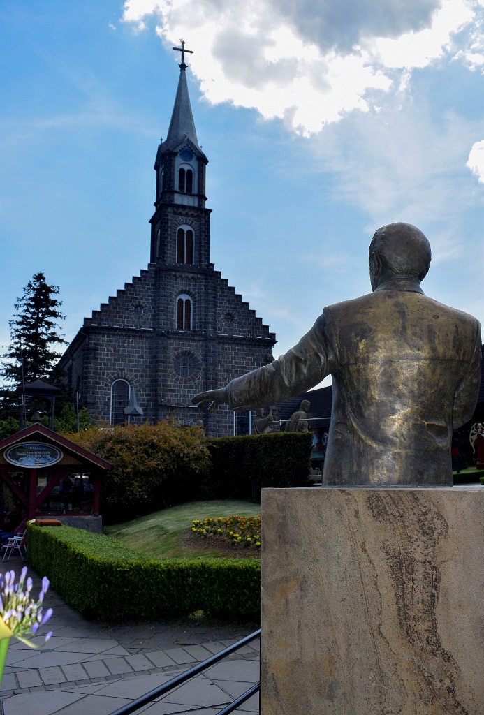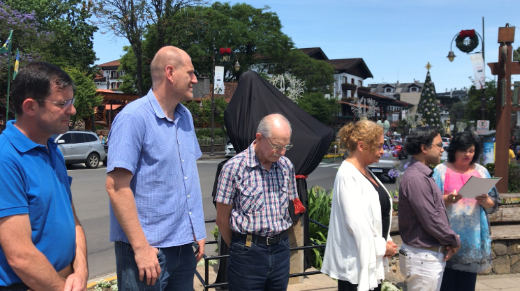 Confeccionado pelo escultor bielorrusso Iouri Petrov, o busto foi inaugurado em dezembro de 2007 em Gramado. Após atos de vandalismo, o busto do maestro esteve sem a batuta por mais de seis anos. Em 2017, a Secretaria da Cultura entrou em contato com a artista Débora Irion solicitando a recuperação do mesmo. Débora, voluntariamente, doou a batuta.