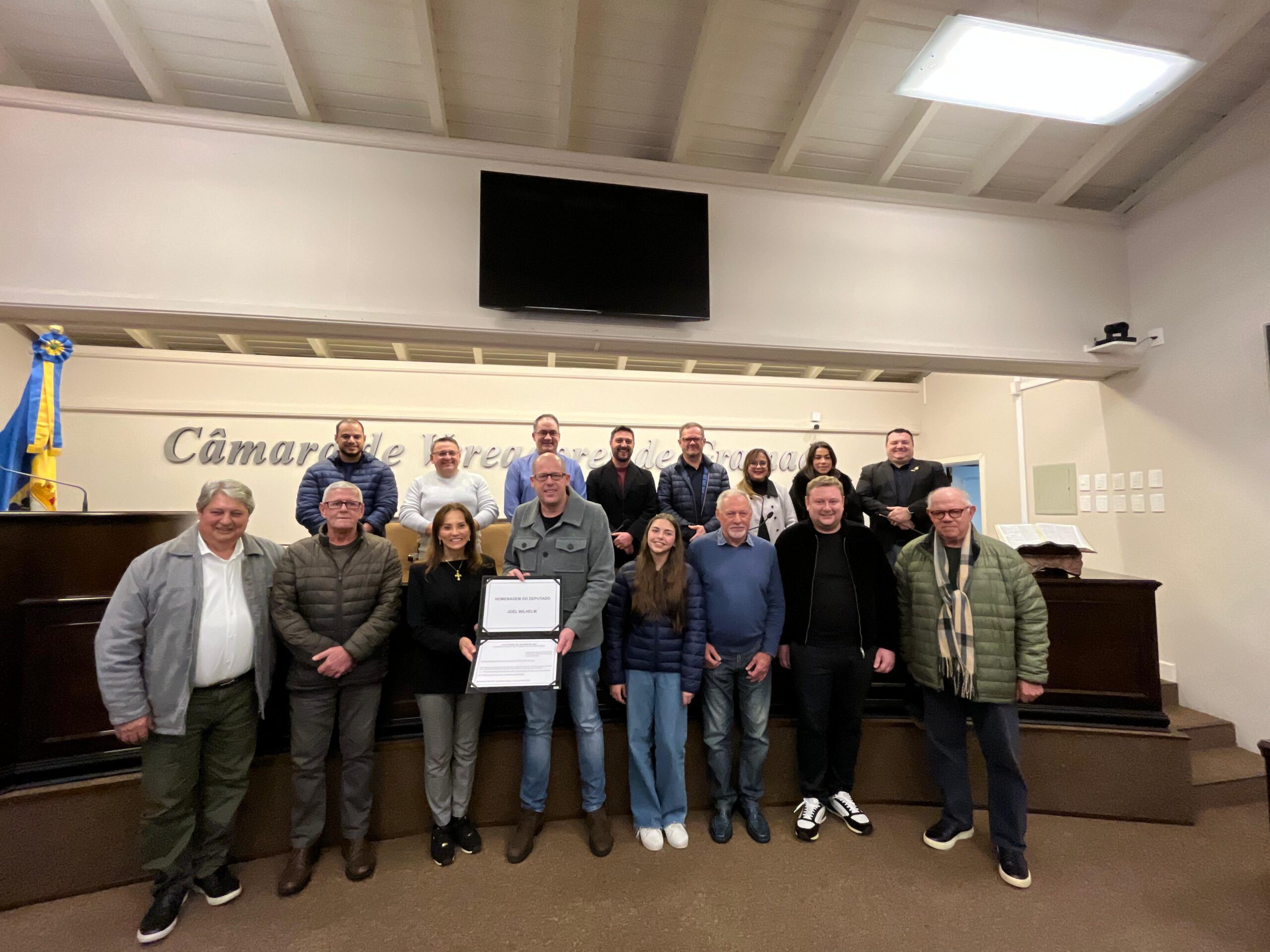 Na última sexta-feira, dia 11, no Plenário Júlio Floriano Petersen, a Câmara Municipal de Gramado, em ação conjunta com o gabinete do deputado Joel Wilhelm e com a Prefeitura, participou da cerimônia de oficialização do nome da ERS-373, rodovia que liga Gramado a Santa Maria do Herval, como Rodovia Horst Volk. A denominação foi instituída pela Lei Estadual nº 16.285, de 2 de maio de 2025, aprovada na Assembleia Legislativa e sancionada pelo governador Eduardo Leite.